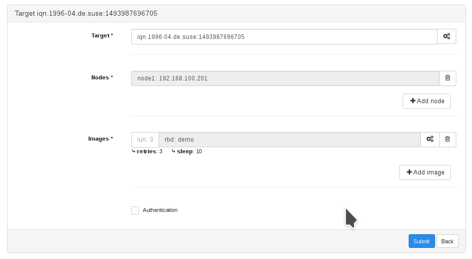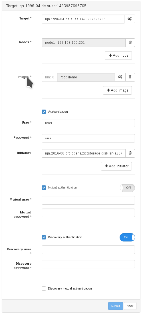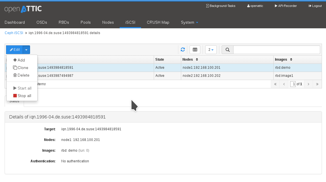 The corresponding iSCSI management frontend work is tracked in OP-2134, which is developed by our newest member of the team, Ricardo Marques. With this, you will be able to add/edit/clone and delete iSCSI targets, as well as starting or stopping them. The pull request related to this part is PR#73.
